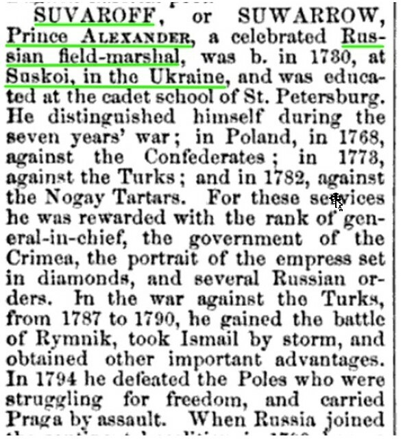 Следовательно, подлинная история, о судьбе рода Суворовых, всё ставит на свои места. А вот часть современной исторической школы, идущая на поводу у запада и сепаратизма, за деньги государства, обманывает и государство и народ.